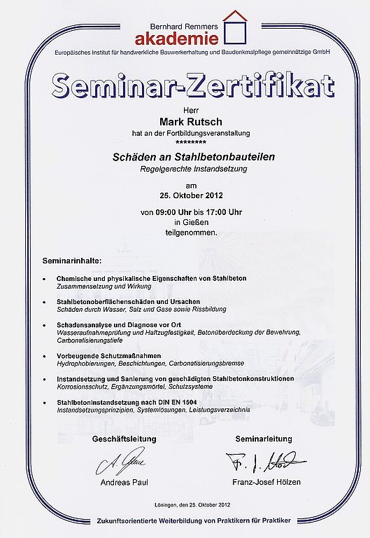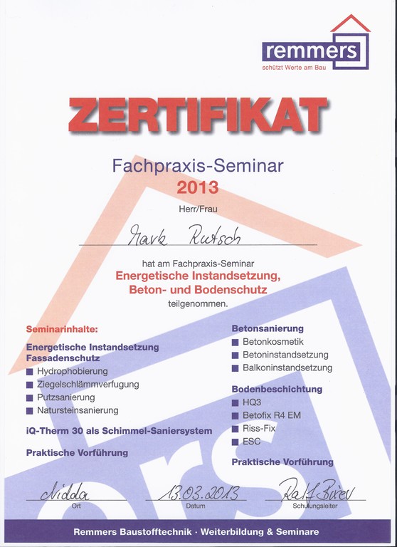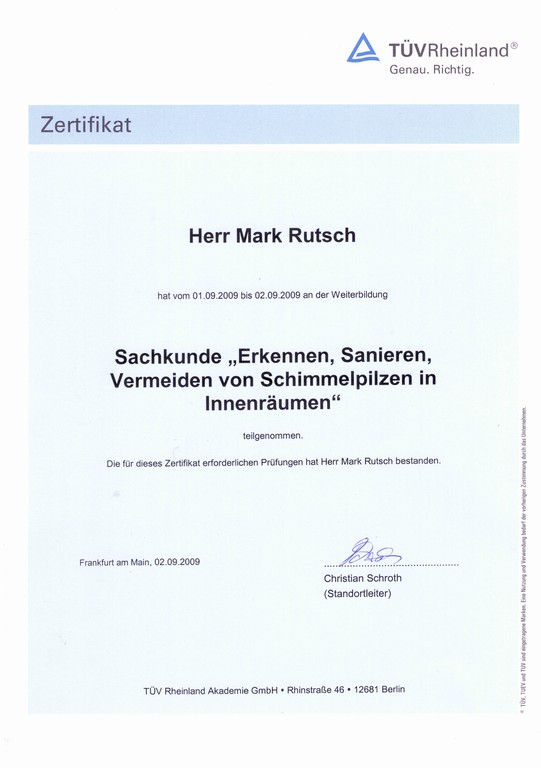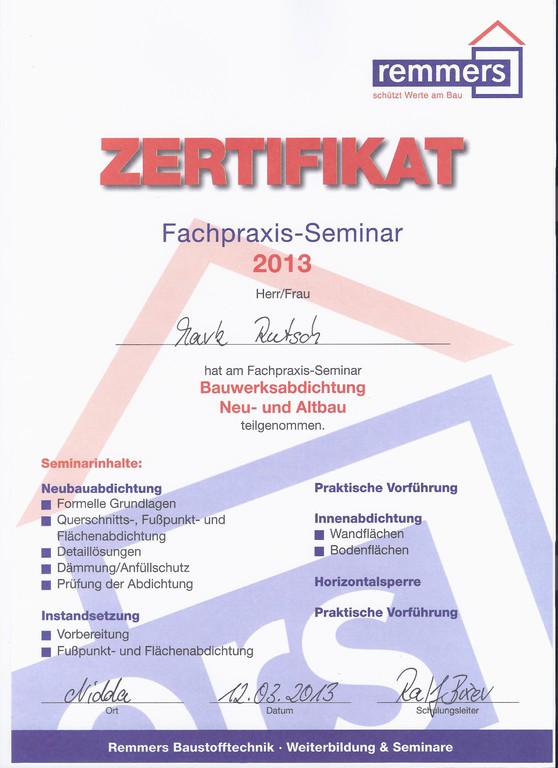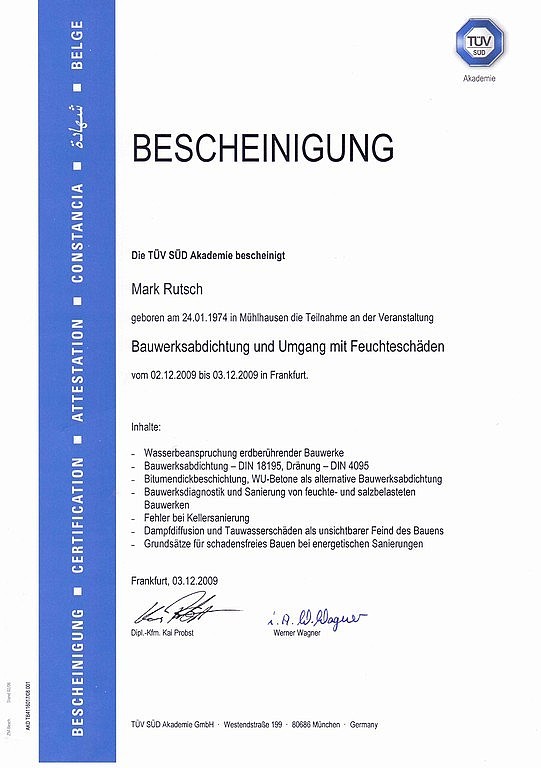 Unserer Unternehmen kann auf umfangreiche fachliche Erfahrungen im Bereich Hoch- und Tiefbau zurück greifen. Wir haben uns auf die Sanierung von Feuchtigkeits- und Schimmelpilzschäden in den vergangenen Jahren spezialisiert, um bestehende Gebäude zu erhalten und zu schützen. Durch die Spezialisierung bieten wir eine hohe fachliche Kompetenz mit nachhaltigem Sanierungserfolg. Hohe Qualität in der Durchführung und im Material auf neusten Erkenntnisstand sind für uns selbstverständlich. Fort- und Weiterbildung sind ein wichtiges Standbein für diesen Anspruch.